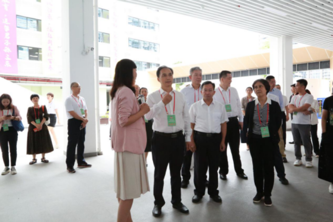 委员们实地察看了海心幼儿园、山海学校的校园环境、功能场所,深入了解了学校的设计理念、规划布局、教学管理等具体情况。