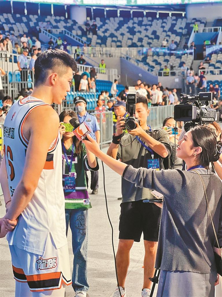 龙华新闻摄影记者蔡维泽(中)在深圳龙华篮球文化周末拍摄瞬间。