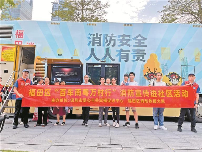 2023年11月9日是全国第32个消防宣传日,11月以来,深圳市爱心与共幸福促进中心与福田区消防救援大队在香蜜湖街道香蜜社区、园岭街道华林社区、香蜜湖街道竹园社区、卓悦汇购物中心、少年宫连续开展了5场福田区“百车南粤万村行”消防宣传进社区活动。在此次活动中,福田区消防救援大队消防宣传队消防讲解员依托消防宣传大巴前往各社区、公园开展宣传教育工作,为市民带来了一场场别开生面的“消防宣传之旅”。