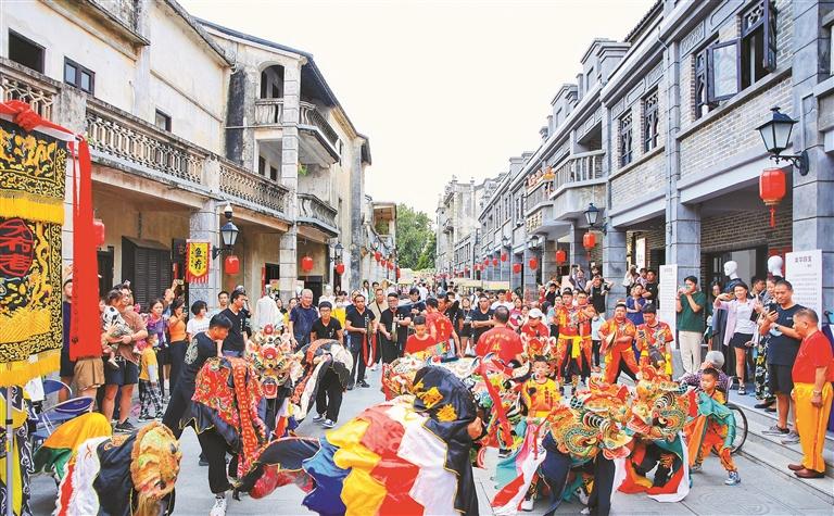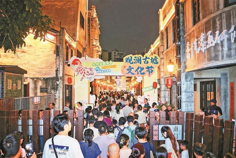 龙华“四宝”展、舞麒麟巡游、国风文艺表演、非遗民俗体验、趣味民间游戏、创意艺术与非遗市集……观澜古墟街头巷尾人头攒动,现场人气空前火爆,广大市民朋友远道而来打卡体验。11月11日,由龙华区文化广电旅游体育局、观澜街道和龙华区重点区域建设推进中心联合举办的首届观澜古墟文化节正式开幕。“双十一”来百年古墟赶一场“文化墟”,可谓意趣非凡。活动当天,观澜古墟人流量达1.5万人次。