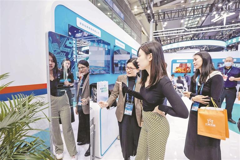 本届高交会,位于深圳会展中心1号馆的龙华展区是一道亮眼的风景线:展馆主造型模拟“高铁轨道”,设置动态科技树,4K大屏结合数字地图,多媒体交互展现“数字龙华、都市核心”定位,给观众以沉浸式的冲击体验,未来感、科技感十足。龙华科技创新企业在此纷纷亮相,一系列走在科技前沿的龙华“智造”吸睛十足,成为现场焦点。不少展品都可以进行互动体验,让现场观众在趣味中直观地感受到数字科技给生活带来的改变。