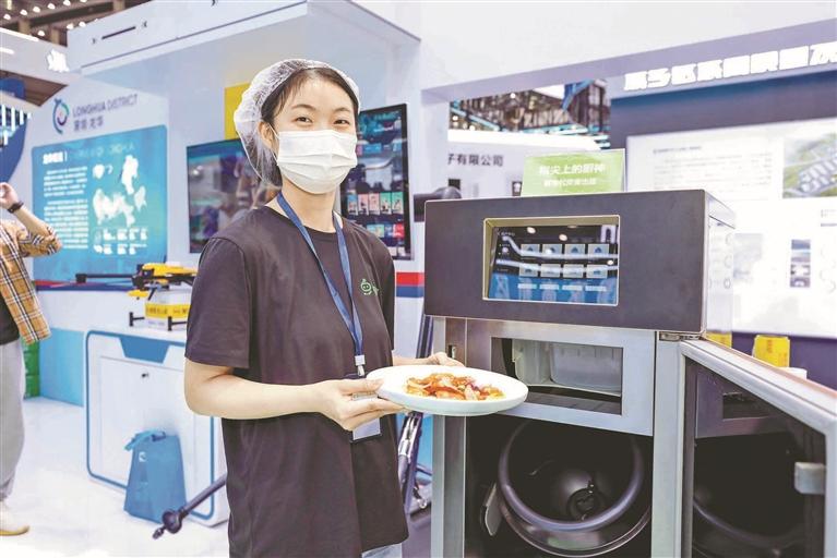 鲜食代展示烹饪机器人及其制作的菜肴。