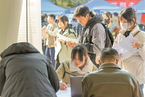 招聘会现场人头攒动,寒冷的天气丝毫未降低求职者的热情。同学们不时驻足在企业招聘摊位前,查看招聘公告,认真倾听企业人力资源负责人的介绍,了解工作环境、发展前景、岗位要求及福利待遇等信息。企业的招聘代表们耐心地回答学生提出的问题,帮助他们更加全面地了解企业岗位。