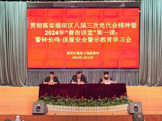 2024年是实现“十四五”规划目标任务的关键一年。1月12日下午,福田区查处违法建筑和处理农村城市化历史遗留问题领导小组办公室举办了今年首场“善治讲堂”活动,旨在积极贯彻落实福田区八届三次党代会精神。会议邀请到区纪委监委进行指导,市规划和自然资源局福田管理局、市交通运输局福田管理局、市市场监督管理局福田监管局、区纪委监委、区住房建设局、全区房屋安全管理责任主体等相关部门列席参加。