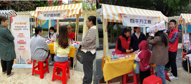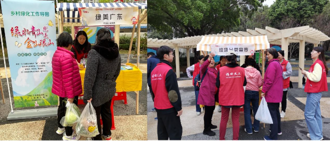 “绿美广东”摊位格外引人注目,志愿者们热情地向每一位参与者传递着绿美广东的知识。“绿美广东生态建设,广东将开展哪六大行动?”“如何保障绿美广东生态建设工作落到实处?”居民们驻足在“绿美广东”摊位前开动脑筋思考,相互交流讨论,大家在不断通关赢取奖品的同时,进一步学习到了绿美广东的知识。许多妈妈带着孩子一起来参与活动,一起为环保出一份力!志愿者们为现场居民免费发放了20余种植物种子,并邀请大家现场认领署名播种,共同参与美丽家园建设。广东中旅推出了一系列绿色旅游方式,倡导市民文明旅游、安全出游,共同构建和谐旅游环境。