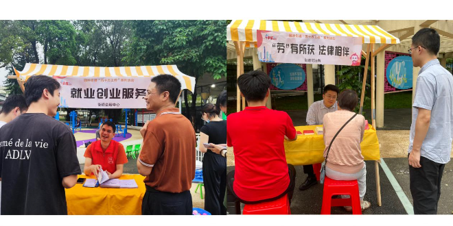 红荔社区退役军人服务站“退役不褪色,职场再辉煌”摊位开展了一系列技能提升类服务,涵盖就业指导、政策咨询、技能培训、岗位推介等多个方面,为退役军人劳动者和用工企业搭建精准、高效、便捷的对接交流平台。现场有不少退役军人来咨询。“‘劳’有所获 法律相伴”摊位上,园岭街道司法所工作人员就劳动合同的订立、履行、变更、解除和终止等方面,以案说法,深入讲解了与劳动者息息相关的法律问题以及法律实践中的对策建议,让劳动者更加直观地了解遇到相关法律问题应如何维权。