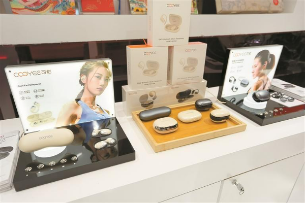 深圳市贤达信息技术有限公司展出OWS开放式蓝牙耳机、与施华洛世奇及COOYEE品牌联名的手机镜头膜等科技产品,让现场观众体验和感受了新一代OWS开放式蓝牙耳机的科技感。