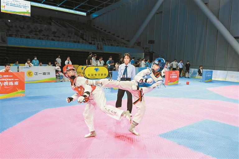 跆拳道选手在比赛中。