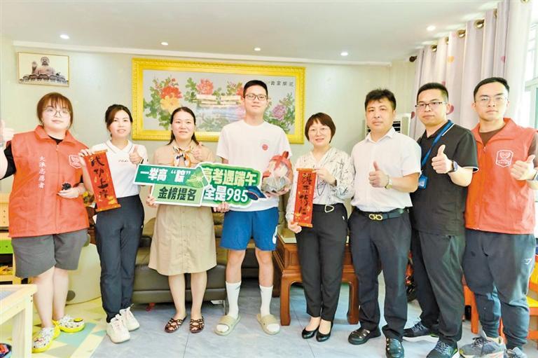 大浪街道工作人员和志愿者为考生送来粽子和美好祝愿。