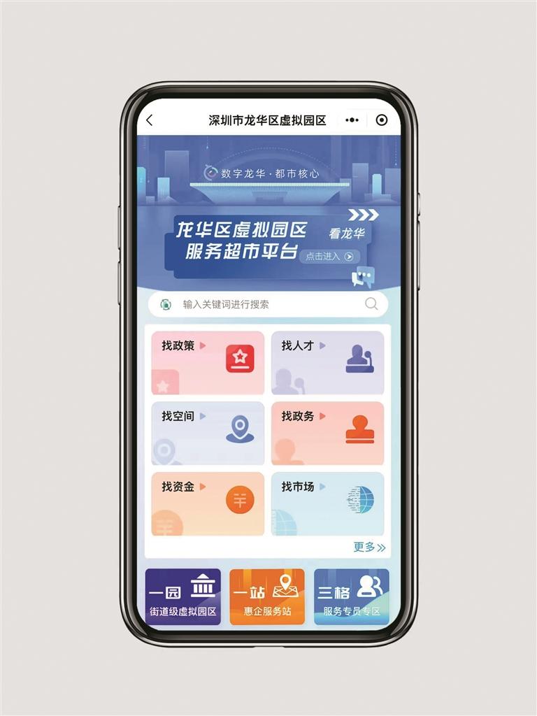 今年以来,龙华区依托“i龙华”平台建设区级虚拟园区平台,统筹全区各层级服务应用系统、App、小程序等,与区内各层级应用平台实现了互联互通,为中小微企业和个体工商户提供人才、用工、用地、用房、物流、融资、保险、会计、法律、社会事务、政务服务等一揽子服务。