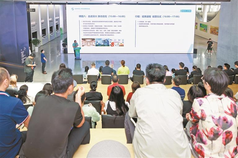 当天的旅游产品推介会,多家企业带来了特色各异的研学营旅游产品,包括启航智慧龙华·感触科技脉动、亲子研学之文化与财富·观澜古墟研学体验、亲子研学之来上围村在地创作体验、繁花·闺蜜研学营、还原版画村榫卯结构拼搭、古村一日营传统非遗体验、X星球部落营、体验非遗传统文化沉浸解读鹏城故事、以劳启智以食育人——智食研学食育劳动教育基地、X战队精英少年成长特训营、好习惯学习托管夏令营等,同时壹方天地带来系列暑期套票推介,以最优惠的价格吸引消费者前往商圈体验和消费。