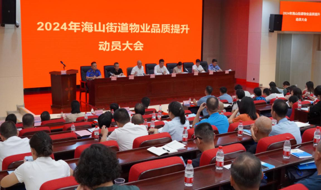 为进一步构建新型物业管理模式,实现物业管理高品质全覆盖,以“创新社区治理体系建设”为抓手,全力推进海山街道物业管理各项工作再上新台阶,近日,海山街道召开“2024年物业服务品质提升”动员大会暨物业管理能力提升培训班。海山街道党工委副书记、办事处主任杜东升,区委政法委副书记赖远琴,街道党工委副书记、综治办主任张六明,区住房建设局副调研员张玉江,街道党工委委员、党建办主任翁钦响,海山派出所所长陈宇明,街道执法办主任徐伟,区委政法委、区委社会工作部、区住房建设局、海山派出所以及街道综治办、应急办、执法办、党建办相关业务负责人,各社区党委书记、治安专员、物管专员、平安志愿者,辖区各物业服务企业负责人、小区党支部书记、业委会主任等120余人参加此次会议。