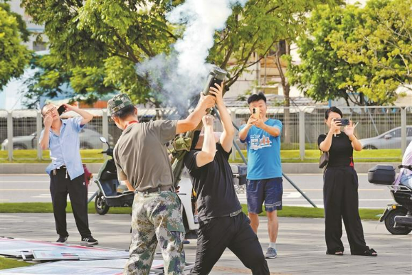 7月21日,由光明区国防教育办公室主办的“强军有你 青春有彩”——光明区2024年国防教育“六进”巡展暨征兵宣传活动在光明国际汽车城举行,旨在通过丰富多彩的形式,深化公众对国防重要性的认识,激发广大青年的爱国热情与参军报国志向。 活动现场,以人民海军成立75周年为基础精心设计的一排排宣传展板整齐排列,内容涵盖了海军建设的辉煌成就、历史沿革、现代军事科技、征兵政策等多个方面。在军事体验活动和互动游戏环节,市民朋友通过单兵战术动作体验、支援前线等模拟战术训练,学习了解军事知识,增强国防观念。 据悉,本次活动作为光明区2024年度国防教育工作的重要部分,以“流动巡展+国防教育互动体验”的形式,将活动带入校园、机关、园区、社区、广场、公园,以“知、行、践”深入开展全民国防教育。活动通过图片巡展、线下互动等方式,多角度宣传国防及军队建设、现代军事科技及军兵种等相关知识,让广大适龄青年了解国家安全形势和征兵相关政策,勉励莘莘学子把爱国之心化为报国之行,踊跃报名参军,到军营实现人生梦想。 接下来,光明区国防教育办公室将走进红花山公园、万达广场、光明街道办事处等地,开展全民国防教育巡展活动。