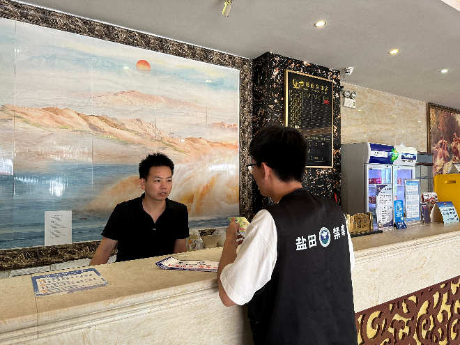 为进一步加强重点场所从业人员识毒、防毒、拒毒能力,明确从业人员的禁毒责任和义务,遏制重点场所内吸毒、贩毒等违法行为发生。近日上午,深圳市盐田区海山街道平安法治办组织禁毒志愿者走进辖区重点场所开展禁毒宣传活动。