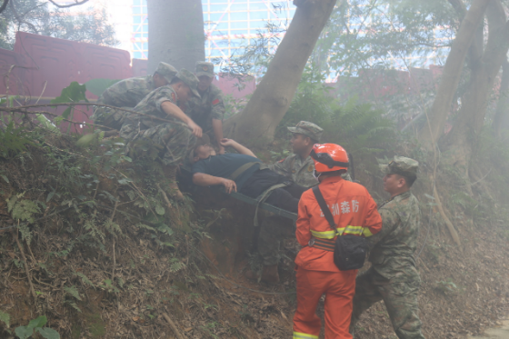 罗湖区委(政府)总值班室接到演练指令信息后,迅速向当日值班区领导卢耀明副主任报告,卢耀明副主任根据罗湖区处置森林火灾应急预案启动区级层面II级应急响应,区总值班室根据相关应急预案要求和突发事件实际,快速通过微信群、短信、电话等方式,组织区森林消防大队、区人武部、区卫健局、区水务局、区城管局、区文体局、区住建局及区消防救援大队等多支应急队伍和相关专家开展应急救援处置和被困人员搜救。现场气氛紧张、贴近实战,在指挥员的有序指挥下,各部门各司其职,协调配合,迅速完成应急处置。