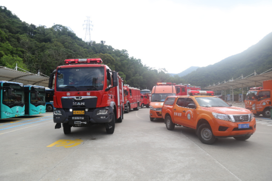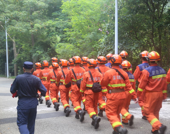 此次演练假设情景为2024年9月20日上午10时28分,罗湖区仙桐体育公园附近突发2起森林火情,2名徒步登山人员被火场围困,火势蔓延迅速并逐步逼近罗湖外国语学校施工工地。