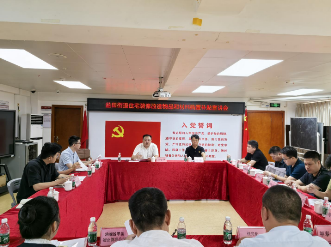9月26日下午,盐田街道党工委副书记、办事处主任王传甲在东海社区工作站主持召开盐田街道大规模设施设备更新和消费品以旧换新工作推进会议,专题开展盐田街道住宅装修改造物品和材料购置补贴宣讲会,快速响应、扎实推进市、区工作部署。街道党工委副书记、人大工委主任郭松,各社区党委书记,佳兆业、港嵘拔翠园、安居云畔物业管理公司负责人,深圳市裕泰公司实业股份有限公司副总经理等参加会议。
