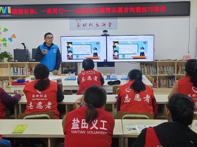 为提升禁毒志愿者能力素质,推动志愿者参与到禁毒工作中来,12月25日上午,盐田街道平安法治办联合盐田社区党群服务中心,邀请社区20余名志愿者,开展以“禁毒有你,一路同行”为主题的盐田社区禁毒志愿者沟通技巧培训。