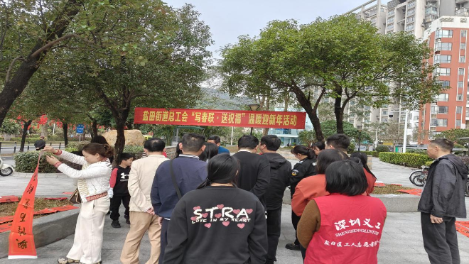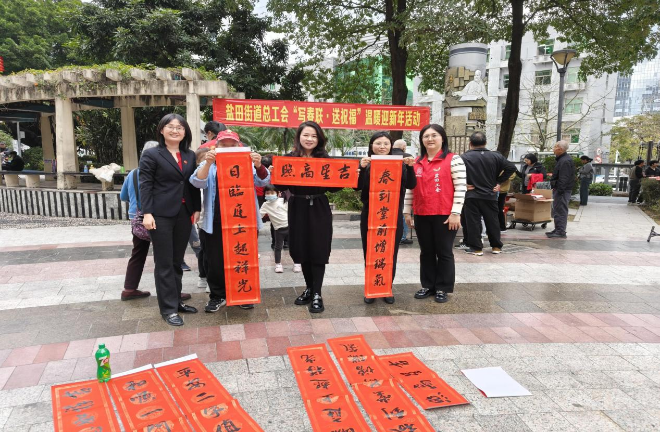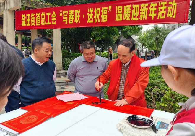 新春佳节将至,为弘扬中华优秀传统文化,丰富职工群众的精神文化生活,营造欢乐祥和的节日氛围,1月21日至23日,由盐田街道总工会主办,明珠社区工联会和东海社区工联会承办的“写春联·送祝福”温暖迎新年活动正式启动。活动邀请辖区书法老师,为一线职工群众写春联、送祝福。
