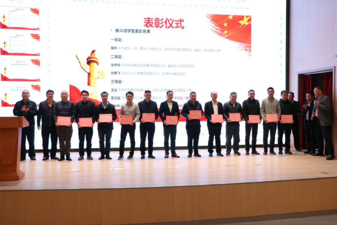 署领导苏济成宣读了福田区建筑工务署第二党支部2024年“两个课堂”年度表彰决定及获奖名单,李辉球宣读了关于表彰深圳金融科技研究院项目2024年度先进单位及个人的决定。会议为获奖单位及个人颁发荣誉证书并致以热烈祝贺,鼓励他们再接再厉,继续为建设美好福田、建设美丽深圳作出更大贡献。