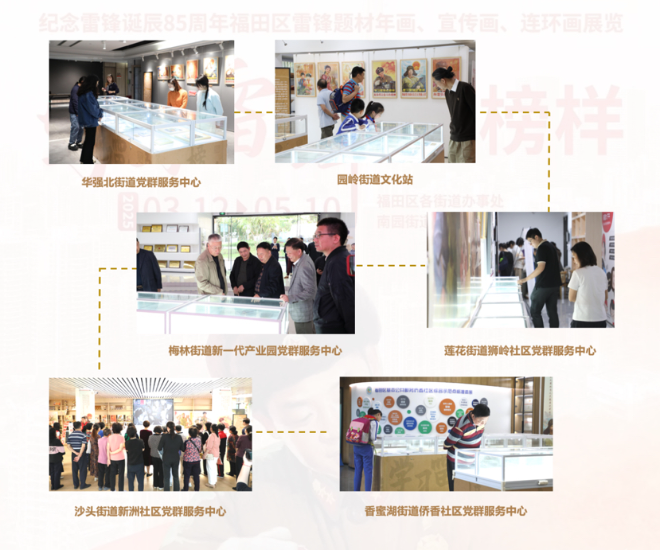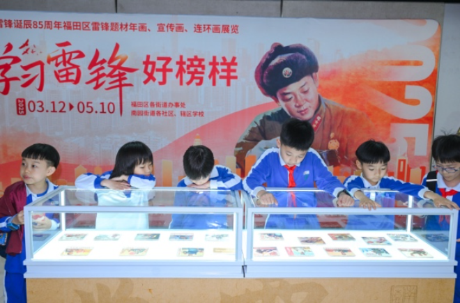 “学习雷锋好榜样-雷锋题材中国传统年画、连环画展览赏析展览”巡展活动自3月启动,从南园街道首发,陆续走进福田区各街道,通过“移动展厅”的形式,将雷锋精神送到居民“家门口”。12块主题展板以时间为轴,系统梳理雷锋生平事迹、经典影像及新时代雷锋式人物案例,图文并茂地呈现“雷锋精神在深圳”的传承脉络,让不同年龄层观众在展览互动中感受精神共鸣。