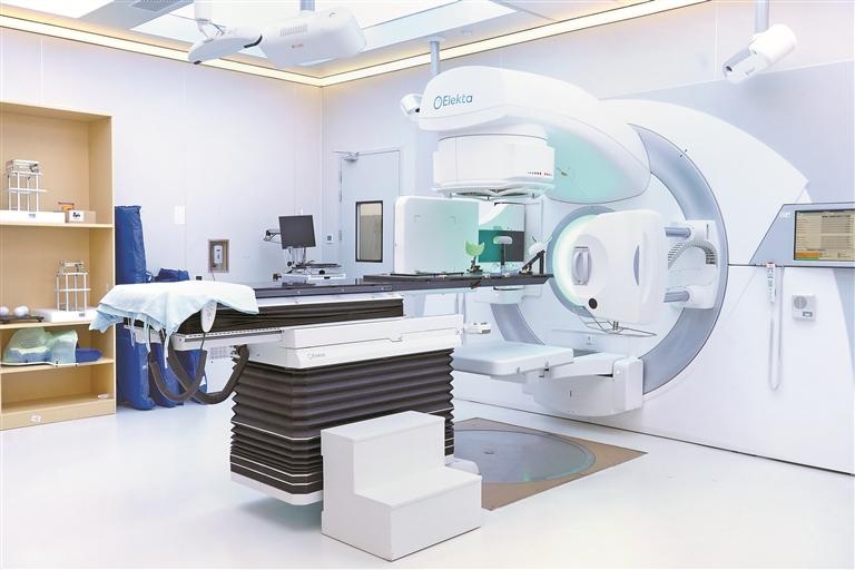 区人民医院放疗中心配备医科达Infinity直线加速器、飞利浦大孔径定位CT等先进设备。