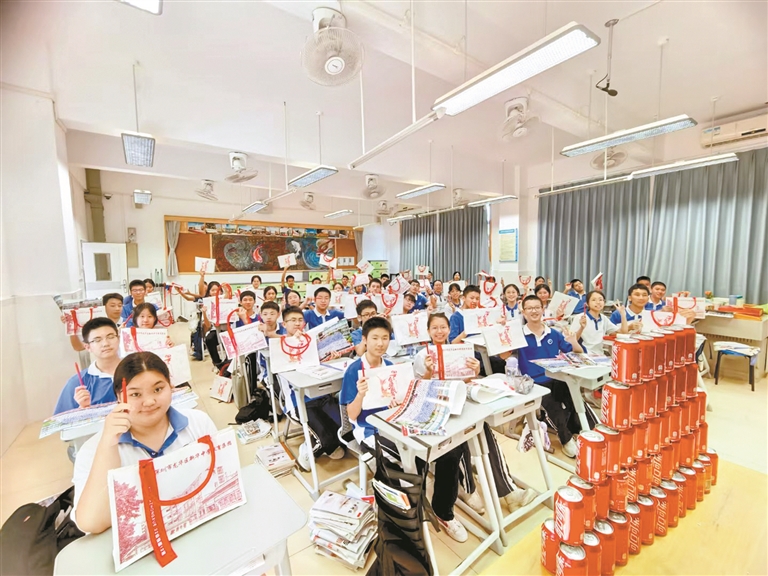 该校初三(12)班班主任黄敏灵发起的“帆布包祝福计划”备受好评。靛蓝帆布袋印着“新华骄子 落笔生花”,定制汽水瓶身刻有专属祝福。当学生们拧开瓶盖看到个性化留言时,教室里充满了惊喜的欢呼。有家长在班级群感慨:“老师把祝福装进了青春的行囊。”