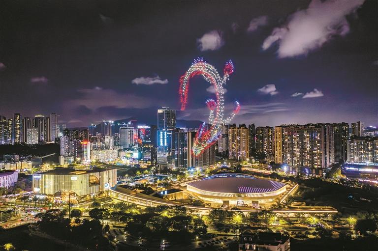 ▲大漠大无人机在龙华点亮“赛博烟花”。