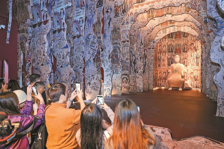 市民打卡《敦煌:千色之域》XR全景奇幻LBE体验展。