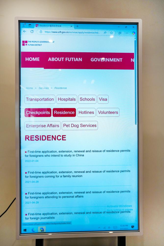 外商服务站还提供外商在深高频办理的涉外服务事项清单,涵盖企业设立、税务处理等,同步配备5G视频导办服务,协助外商通过语音或视频方式,实时连线福田行政服务大厅及各职能部门,咨询业务办理流程、解决疑难问题,从而打破沟通壁垒,助力外商与政府各职能部门“零距离”对接。