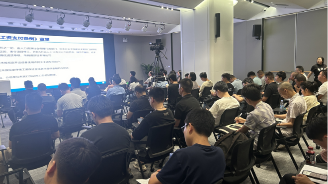 更具创新性的是,系列培训构建了“理论讲解—案例模拟—工具输出”的三阶赋能体系:黄文锋的“目标管理动态闭环模型”为企业提供战略落地工具包,区住建局工作人员对在建工程项目讲授“两制”工作及《保障农民工工资支付条例》有关制度,梁睿开发的“AI办公效率提升工具”,更是让学员实现“培训即能用”。这种将治理目标转化为企业能力的路径创新,有效打通了政策落地的“最后一公里”。