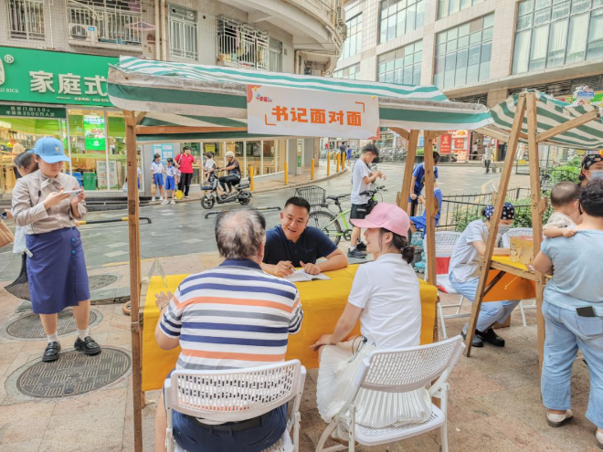 互动交流区气氛热烈融洽。“书记面对面”区域,社区党委副书记罗伟浩与社区居民围坐交谈,大家围绕童乐空间建设、租赁纠纷、社区文体活动等热点话题展开深入交流。罗书记耐心倾听居民诉说“家长里短”,现场分析问题,当场“支招”,实现民呼我应、接诉即办的高效运作。