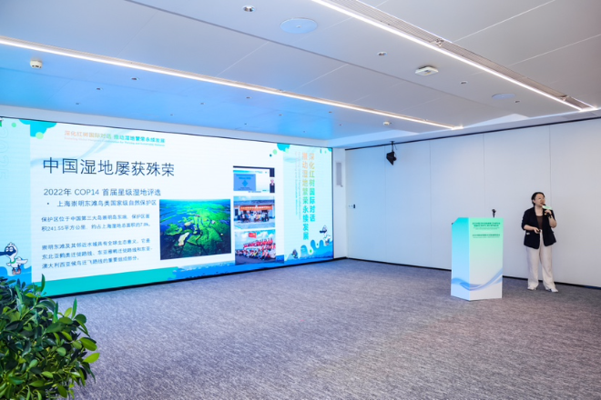 深圳市福田区水务局局长刘慕军围绕绿美福田,分享了福田区在整个红树林湿地的保护与开发过程中,践行的一系列前瞻性、精细化的举措;通过调动多元社会力量参与湿地共治,将湿地教育融入市民生活,塑造湿地文化符号等经验总结。
