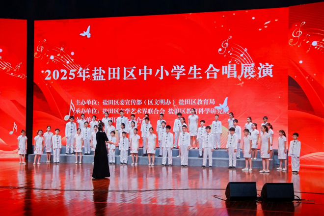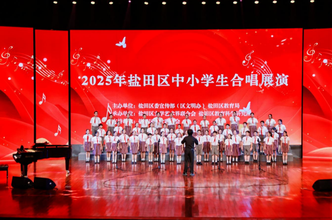 本次合唱展演是盐田区弘扬中华美育精神、落实“以美育人、以美化人、以美培元”理念的生动实践。活动将音乐的种子播撒在学生心中,营造了浓厚的区域艺术氛围,有效提升了青少年的审美素养与文化认同,增强了民族自豪感。未来,盐田区将持续开展形式多样的美育实践活动,为少年儿童搭建更广阔的展示平台,助力他们在艺术熏陶中健康成长、全面发展。