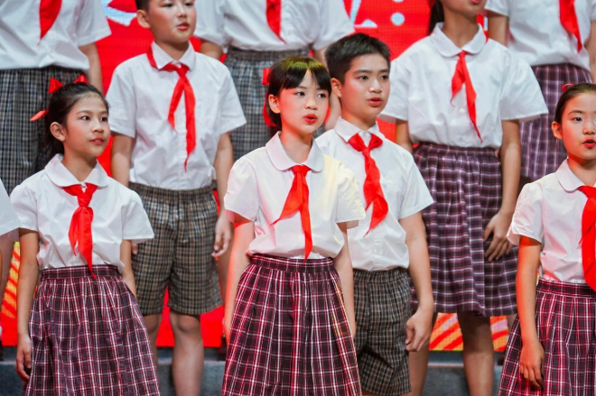 经过前期广泛选拔,活动最终遴选出8支优秀队伍、共计400余名学生登上展演舞台。参演团队涵盖班级合唱、校级合唱团及市级模范团队等多种形式,兼具不同学段特色与多元艺术风格。孩子们以歌声为桥梁,让优美旋律浸润心灵,也让经典作品传递文化力量,共同唱响歌颂祖国、中华民族与家乡的优秀歌曲。