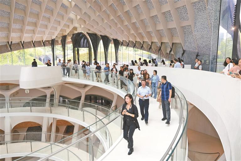 10月13日,著名教育专家李希贵带领百名校长走进深圳龙华区,实地参观玛丝菲尔大厦及创意园区,沉浸式感受龙华时尚产业的建设成果与文化魅力,为教育与产业融合寻找新灵感。