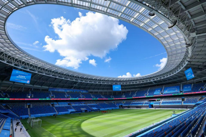 其二,是焕新升级的专业场馆加持。作为赛事核心场馆,深圳市体育中心体育场堪称“足球圣殿”——它是深圳首个符合国际A类标准的专业足球场,采用天然草与人造草纤维融合技术,草皮弹性与耐磨性兼具;智能温控系统保障草皮四季常青,立体排水系统更是实现“暴雨20分钟内恢复使用”,为球员发挥提供最佳场地条件。对观众而言,首排座椅距场地仅9米的设计,彻底打破“远距离观赛”的隔阂,让人仿佛置身赛场中央,近距离感受足球的速度与力量。
