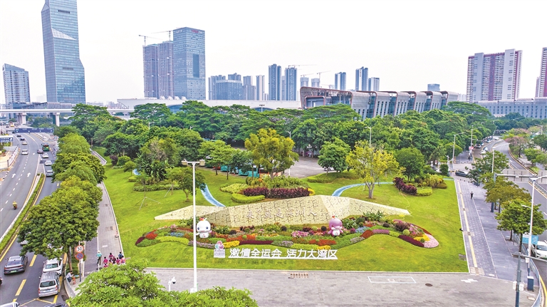 在城市品质提升工作中,龙华区创新采用“大兵团”作战模式,由区城管和综合执法局牵头,联合各职能部门、各街道办,围绕赛事抵离场站、竞赛场馆、接待酒店等核心动线,划定重点区域,开展精准攻坚。目前,重点区域及周边道路已完成超1616组十五运会主题灯杆旗的布设,打造出26处融合赛事吉祥物与龙华本土特色的景观小品,同时设置36处围挡宣传海报;此外,3万平方米的绿化扩容工程也已顺利落地,让赛事沿线通道蜕变为“流动的风景画廊”。
