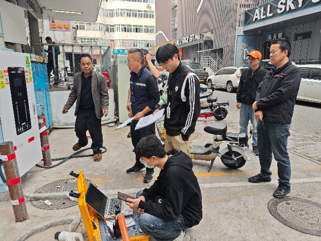 检查组一行重点检查沙头角街道-三环大厦、东埔福苑、海山街道-鹏湾花园一村、梅沙街道-水云间玖湾天域物业小区、盐田街道-倚山时代等充电站,现场听取了运营企业关于场站存在安全隐患整改落实情况的汇报。经现场核查,已按要求完成全部隐患整改,现场未发现重大安全隐患。