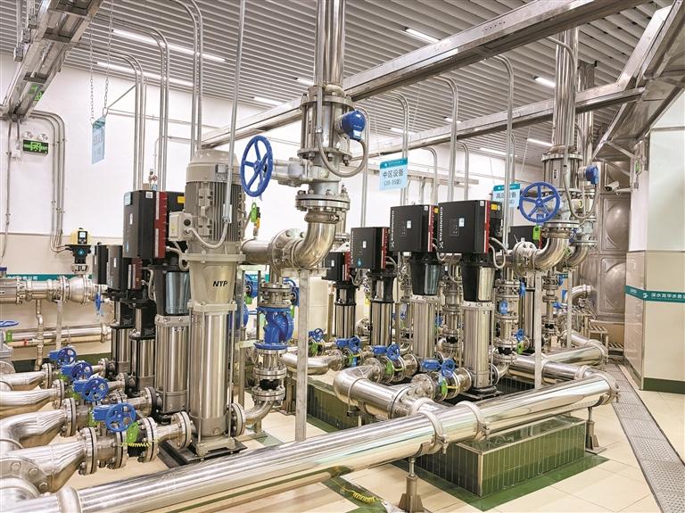 深水龙华水务公司打造的行业首座“绿色节能智慧示范泵房”华盛珑悦小区二供泵房正式亮相。