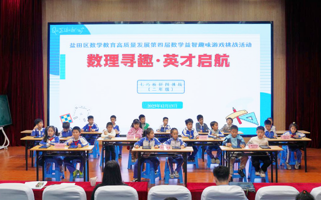 近日,由盐田区教育科学研究院主办的“数理寻趣·英才启航”小学数学益智趣味游戏挑战活动在田心小学举行。200多名二至六年级学生齐聚一堂,在游戏中体验数学的魅力,在操作中激活思维的火花。