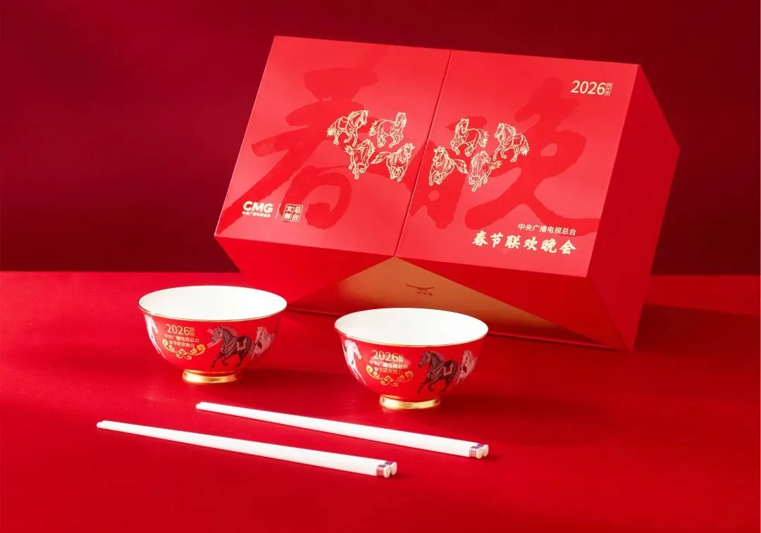 “全国的观众朋友们,大家新年好!”在2026年马年春节联欢晚会上,国瓷永丰源集团董事长刘权辉手捧“马到成功·金春碗”向全国观众拜年。蔡明带来的小品《奶奶的最爱》,背景橱窗里摆放着“金春碗”和“十二骏摆盘”,这是龙华区企业国瓷永丰源生产的瓷器首次亮相春晚。