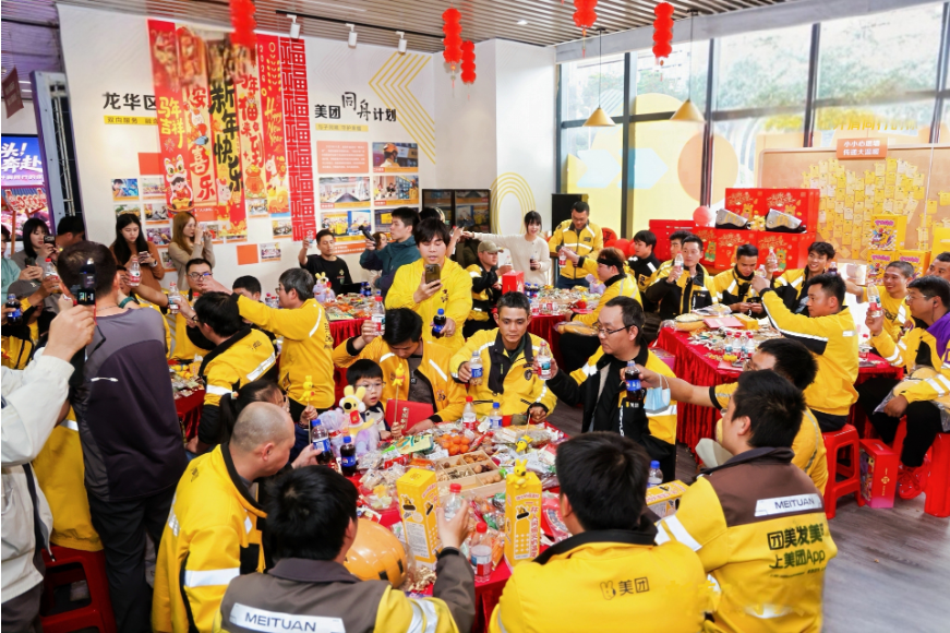 在美团骑手党群服务中心,近百名骑手欢聚一堂,50名优秀骑手接过荣誉证书,掌声响起的瞬间,他们的汗水被看见、付出被铭记、价值被认可。在各街道社区,6场团圆饭、百家宴、饺子宴等暖心聚餐热闹开席,8场新春游园联欢会欢乐启幕。留深过年的新就业群体家庭围坐在一起,拓印年画、制作灯笼、拼装不倒翁,卸下一身的疲惫,和身边的亲友共贺欢喜。指尖流淌的不仅是非遗技艺的温度,更是浓浓的年味;欢声笑语中回荡的不仅是节日的喜悦,更是来自五湖四海的奋斗者,在这座城市共同文化记忆中找到的归属与温暖。
