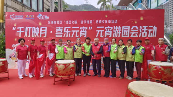 灯火良宵,鱼龙百戏;红火二月,喜乐融融。近日,梅沙街道东海岸社区党群服务中心连廊处张灯结彩、人潮涌动,一场以“社区文脉,佳节传薪”为主题的元宵节活动温情启幕。此次活动由社区党委、居委会依托“民生微实事”项目精心策划,社区纪委、妇联、长青老龄大学、老年人协会及各物业单位通力协作,新现代驻点党群社工组织志愿者倾情服务,吸引辖区150余位居民踊跃参与。现场既有长者携幼孙同乐的身影,也有新就业群体子女受邀加入,年逾九旬的长者也在家属陪伴下欣然赴会,共同绘就一幅“一老一小”其乐融融、全龄友好的社区团圆图景。