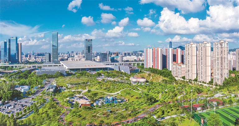 龙华区大力推动公园运维能级跃升。图为北站中心公园。