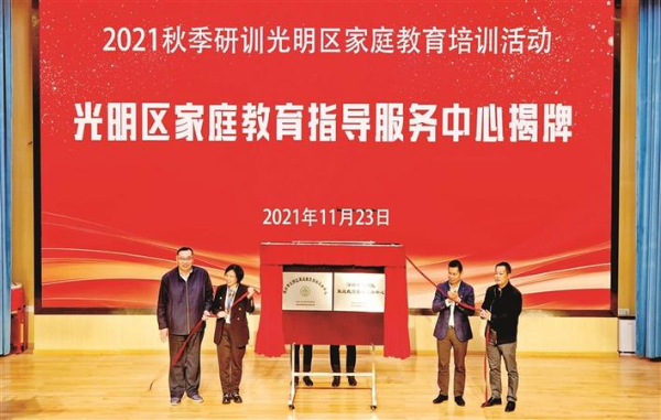 11月23日下午,光明区家庭教育工作现场会暨讲师团培训活动在凤凰学校举行,揭牌成立光明区家庭教育指导服务中心,进一步推动全区家庭教育工作迈上新台阶。
