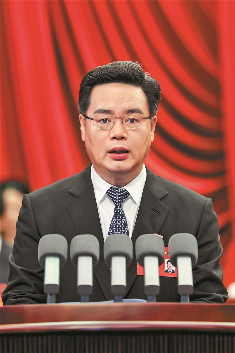 根据会议议程,深圳市市长覃伟中代表市政府向大会作政府工作报告。覃伟中在报告中首先回顾了深圳“十四五”时期的发展成就和2025年工作。他说,“十四五”时期是深圳牢记嘱托、砥砺前行的五年,是深圳发展历程中极不寻常、极不平凡的五年。我们坚持以习近平新时代中国特色社会主义思想为指导,深入贯彻落实党的十九大、二十大和二十届历次全会精神,认真落实党中央、国务院决策部署和省委“1310”具体部署,在市委的正确领导下,在市人大及其常委会、市政协的监督支持下,开拓创新、埋头苦干,经受住世纪疫情严重冲击,有效应对一系列重大风险挑战,“十四五”规划目标任务总体完成,经济社会高质量发展取得突破性进展,中国式现代化的深圳实践迈出新的坚实步伐。