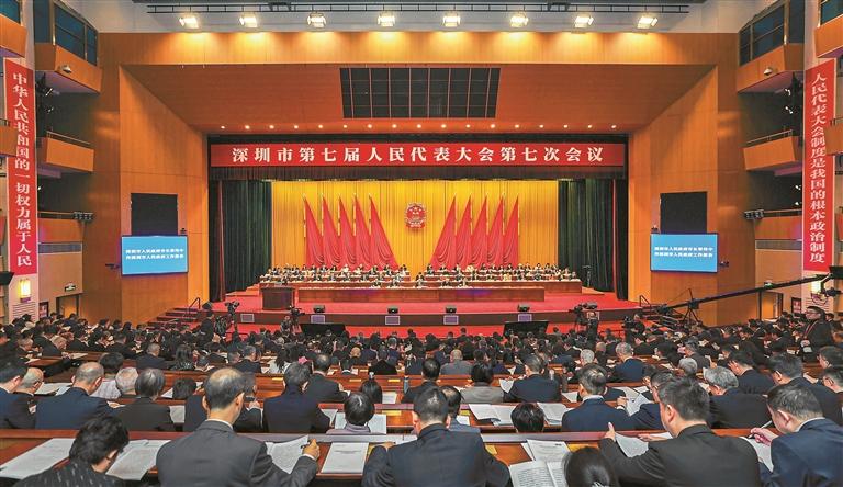 昨日上午,深圳市七届人大七次会议在市民中心礼堂开幕。