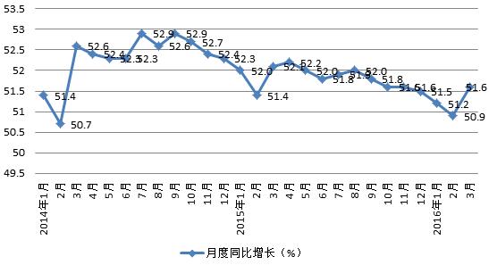 图10 2014-2016年3月深圳制造业PMI指数涨跌情况(月度同比)