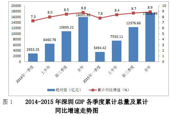 2015年,面对复杂多变的内外部环境,在市委市政府的坚强领导下,深圳以“四个全面”战略布局为统领,坚持解放思想,真抓实干,着力抓改革、促转型、稳增长、惠民生,突出质量引领、创新驱动,主动适应引领经济发展新常态,保持了经济稳中有进、逐步向好的发展态势,实现了有质量的稳定增长和可持续的全面发展。